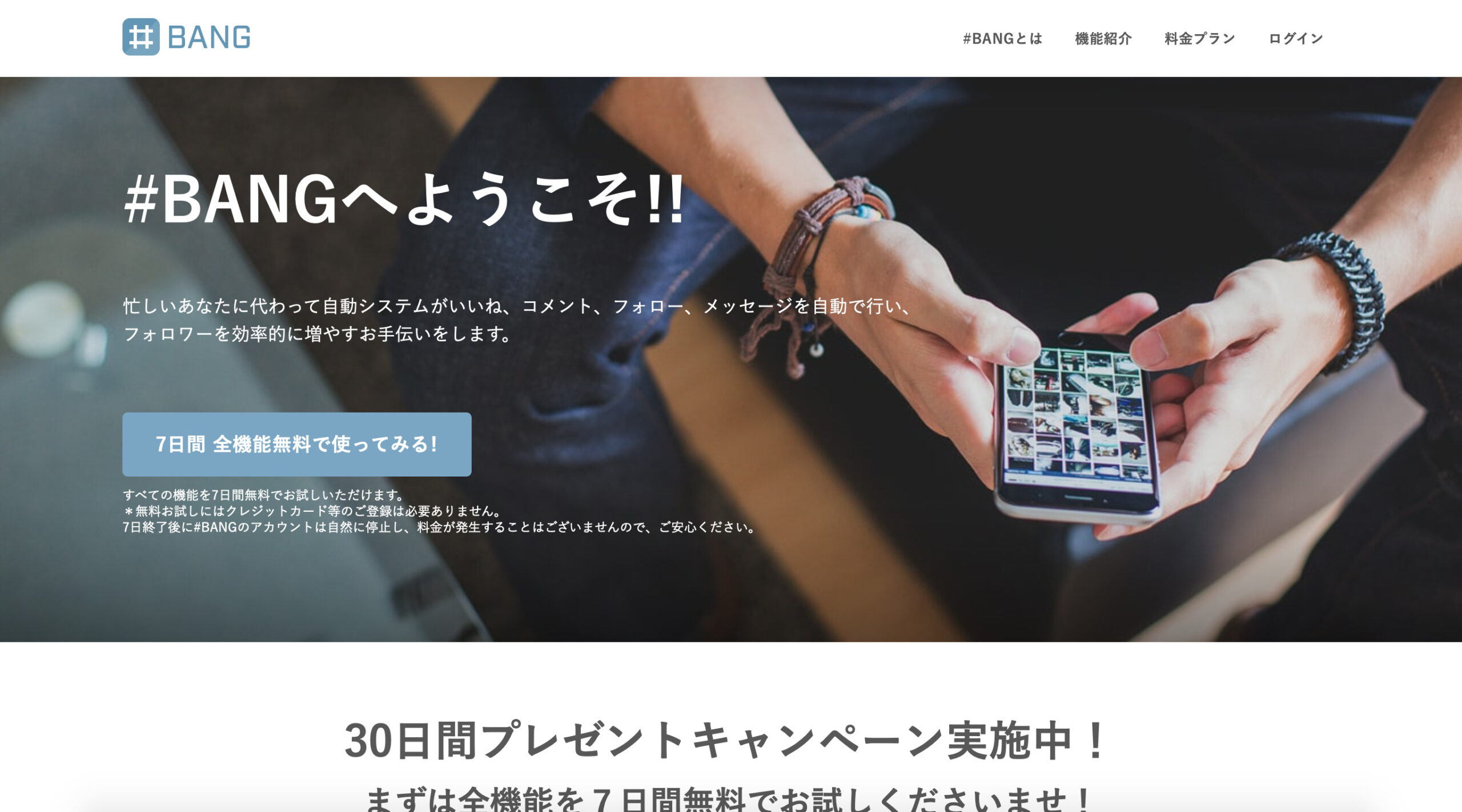 フォロワーを増やすには「#BANG(ハッシュバン)」というアプリが便利です。